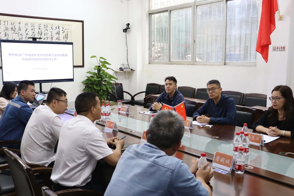 为了进一步加强校企合作,全面了解毕业生顶岗实习、生活等情况。4月27日上午,英国365集团官网副院长林勇、李奕萍,以及辅导员老师骆建祥等一行走访调研了南方投资集团广州电力建设有限公司,看望实习学生。