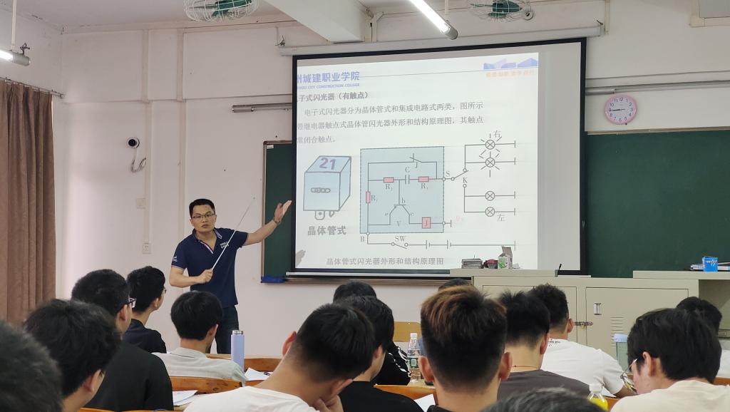 陈伙南老师为365集团汽车教研室副主任。课堂上,陈老师精心设计教学过程,为学生讲授“汽车转向与危险警告信号灯”。通过讲解信号灯的组成、使用和工作原理,结合视频导入实验操作引导,充分贯彻讲练结合原则,充分调动了学生的学习积极性,强化学生对授课内容的理解。