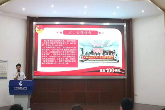 本次活动以奏唱团歌正式拉开序幕。各支部汇报人按照抽签顺序,依次上台通过PPT、图片和视频短片等多种形式对本支部活动进行5-8分钟的精彩汇报。通过对各班级支部的活动开展情况、活动形式、活动亮点、活动成效和意义的展示看出,各支部在辅导员和团支部书记带领下,能够结合专业特色,开展手绘团旗、讲党史、分享红色故事、歌唱红色歌曲以及学雷锋精神等项目丰富主题活动。活动汇报井然有序,现场气氛热烈。最终,经过现场评审,19级新能源1班团支部荣获了本次主题团日竞赛活动的一等奖。