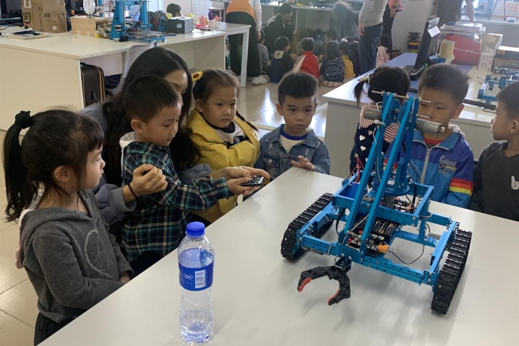 学生体验操控机器人