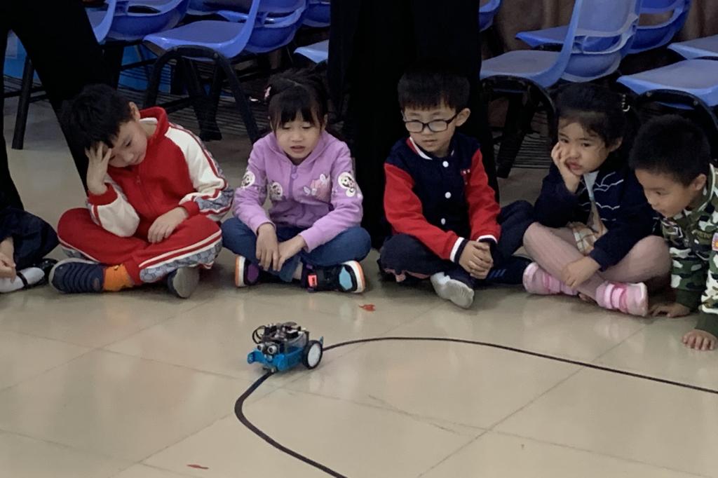 | 学生观看寻迹机器人运动 |