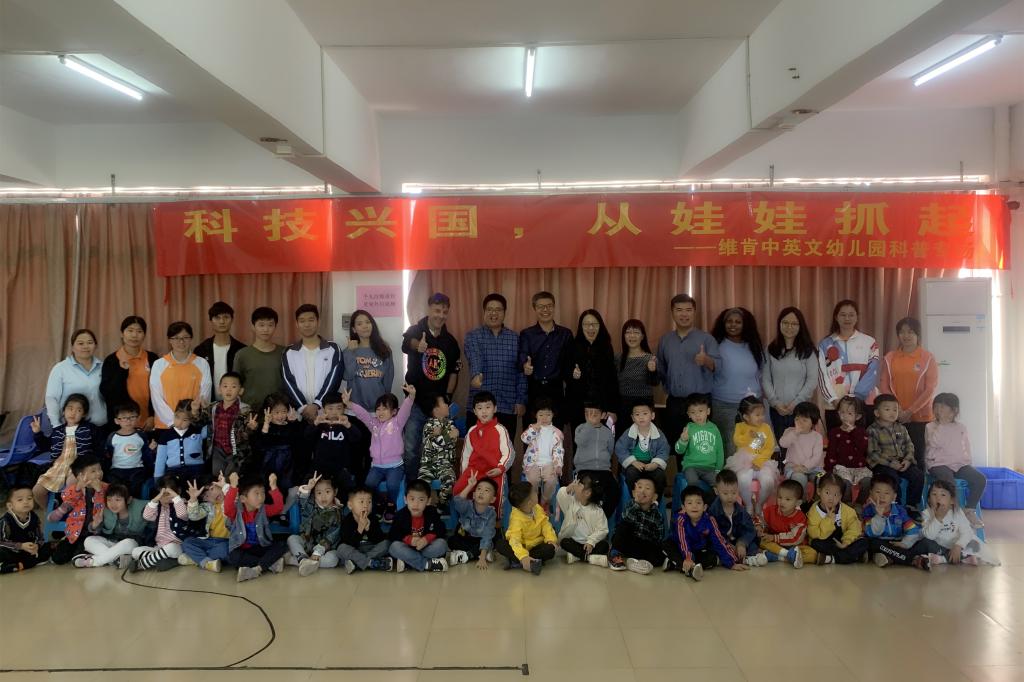 为了培养孩子们的创新精神和实践能力,营造浓郁的科学氛围,激发孩子们从小爱科学、学科学、用科学的兴趣。11月27日上午,维肯中英文幼儿园的孩子们来到英国365集团官网“大学生创客工作室”参加科普活动。英国365集团官网领导班子全体出席,李有兵副院长主持活动。