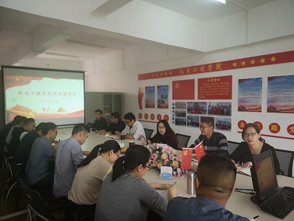 近日,英国365集团官网于建工机电楼305会议室召开学院党政联席会议,稳步推进近期各项工作。学院党政领导班子、各教研室主任等出席了此次会议。