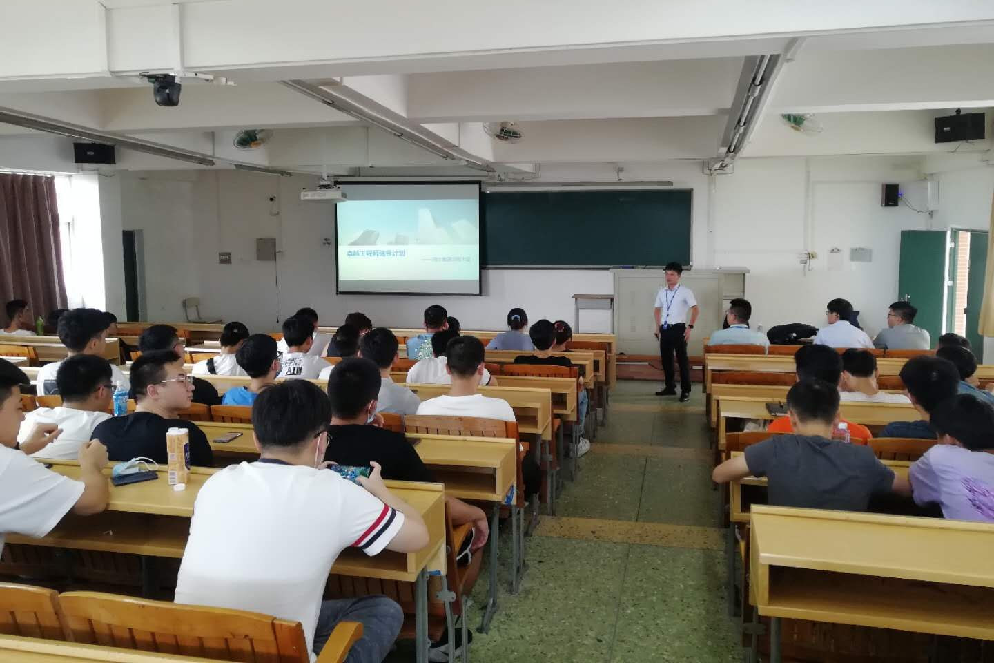 会议开始,干总代表海尔集团进行发言,对学院老师和同学们的出席表示欢迎,以播放视频方式介绍了海尔集团的发展规模、企业文化与未来规划等,重点以卓越工程师项目为例,展示了项目第一期所取得的优异成果以及对未来人才培养的规划,他希望各位有理想、有担当的同学能够积极参与项目。之后,卓越工程师项目第一期优秀学员赖宇桦和陈镱兴发言。赖宇桦跟大家分享了在参与项目后个人在思考能力与实践能力上的巨大变化,陈镱兴则跟大家分享了在学校里以老师为主导的学习与项目以产教结合的实践学习的区别。宣讲会现场解答了很多同学对项目的疑问。