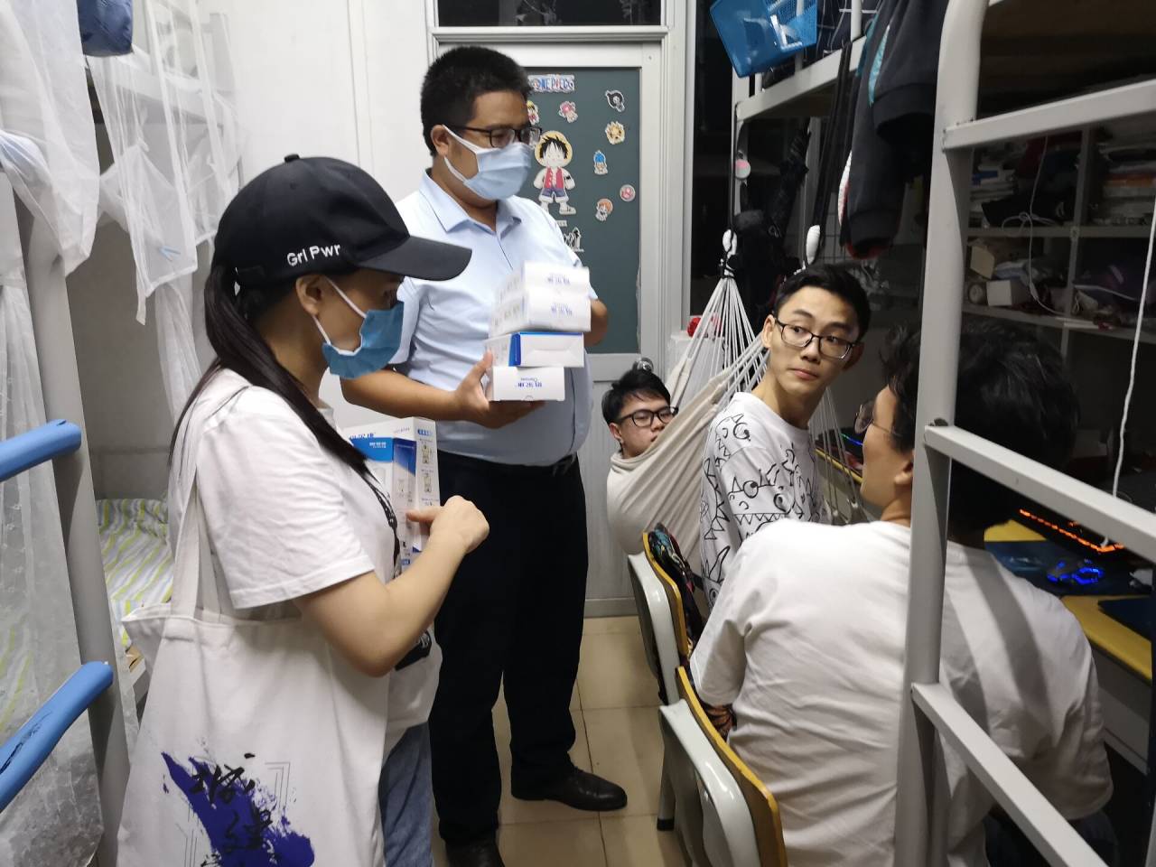 当晚,学院领导班子协同辅导员走访学生宿舍,了解学生住宿环境、学生返校后的动态、是否需要帮助,并对学生作了防疫安全提醒。