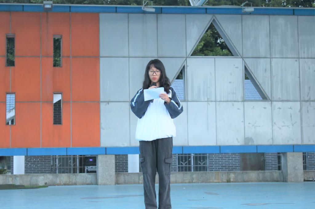 随后,学生代表郑璐同学围绕“不忘初心、牢记使命”发表国旗下的讲话,她呼吁同学们在接下来的大学生活中,学会思考、学会实践,在思考与实践的过程中,培养自己创新、协作、沟通与管理等多方面的能力。