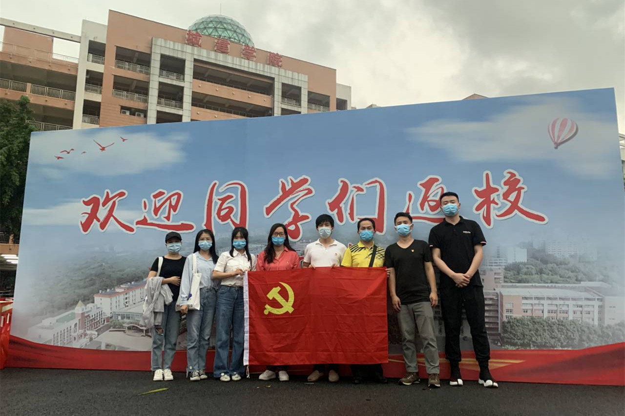 学生返校的整个流程严谨、科学,报到区划分了行车区和学生报到区,返校学生需要出示健康码、体温测量、人和行李消毒等程序。现场有校园值班医生、辅导员等各个部门联动,明确了各块工作职责。