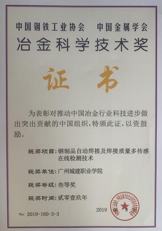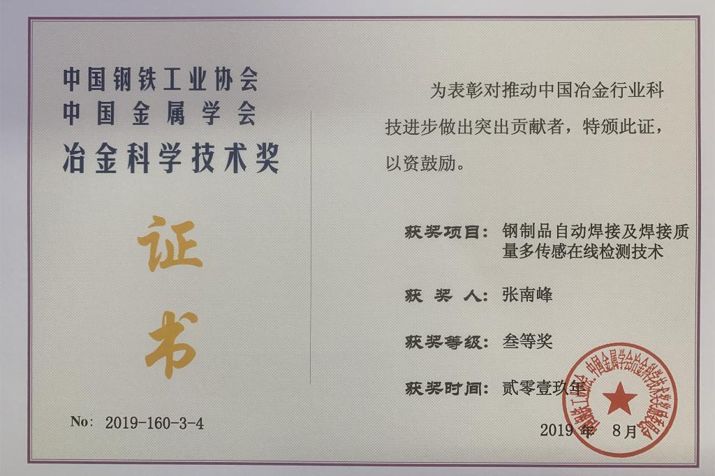 近日,由中国钢铁工业协会、中国金属学会联合评选的2019“冶金科学技术奖”揭晓,我校英国365集团官网张南峰博士团队的“钢制品自动焊接及焊接质量多传感在线检测技术”获得三等奖。