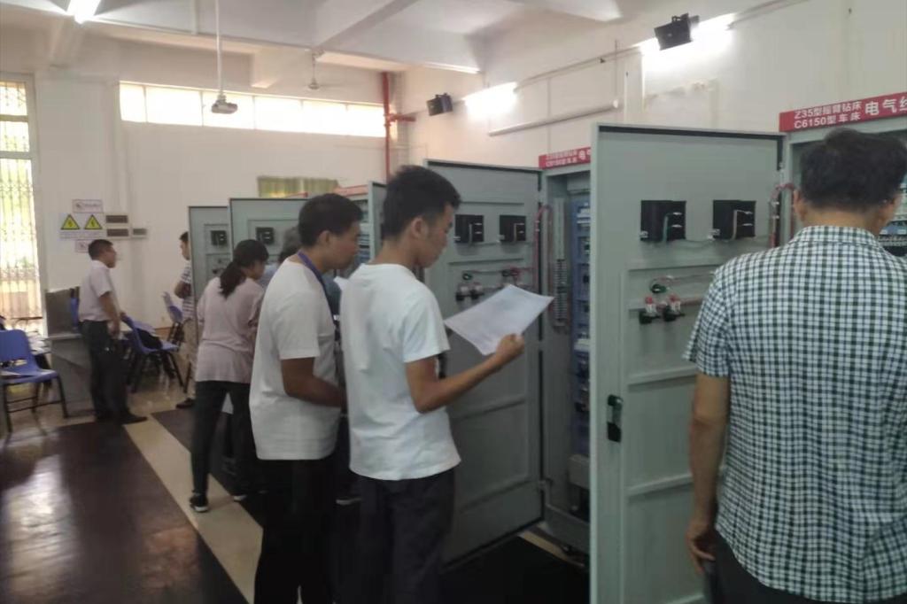 会上,全体教师认真学习了M7130型磨床、Z35型摇臂钻床、C6150型车床电气线路控制等考核装置的结构、基本操作、保养方法和注意事项等内容,并在赵工的指导下现场练习、实际操作。赵工也带领大家现场学习了维修电工实验室的规章制度及其他设备使用操作规范。之后,教师还积极讨论了如何利用现有实验设备有效加强学生的故障排查能力及其它考证技能,从而有效提高考证通过率。
