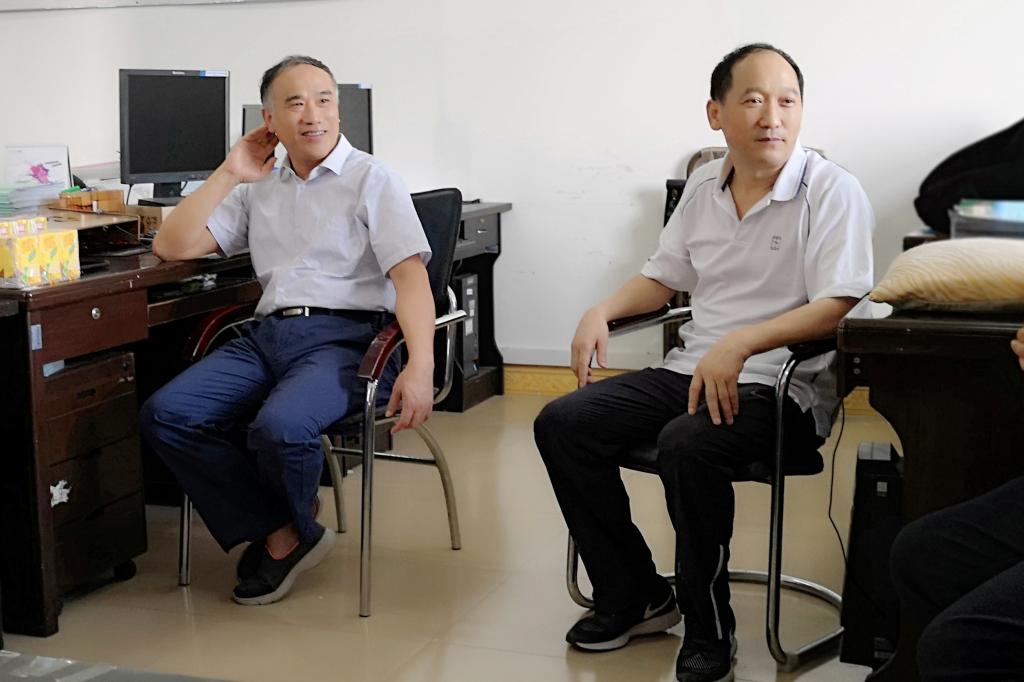 蒋新华校长(左)、杨清国书记(右)与项目组成员亲切交谈