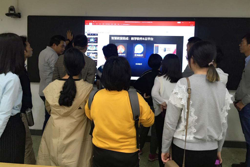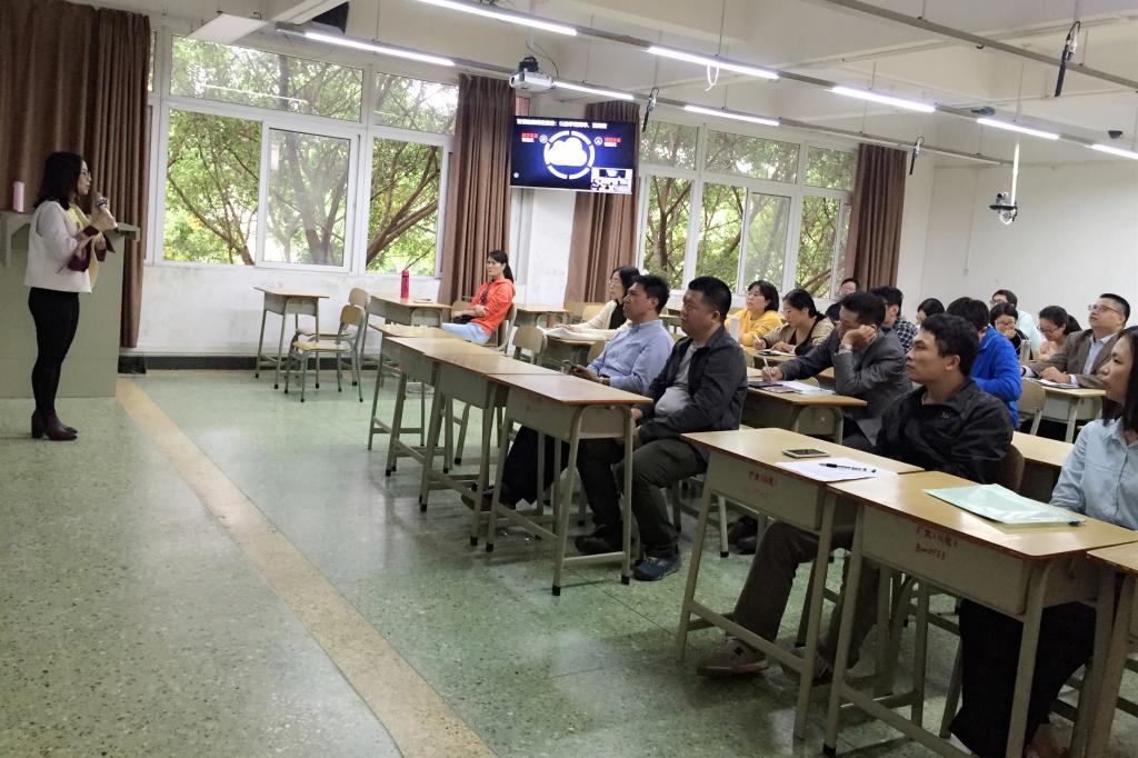 12月3日,英国365集团官网全体教师在人文艺术楼302课室参加了由现代教育中心举办的“智慧教室”使用培训会。本次大会旨在提高365集团教师教学水平,激发学生学习兴趣,提高智慧教室互动教学软件的使用效果。培训会由“智慧教室”供应商江老师主讲。