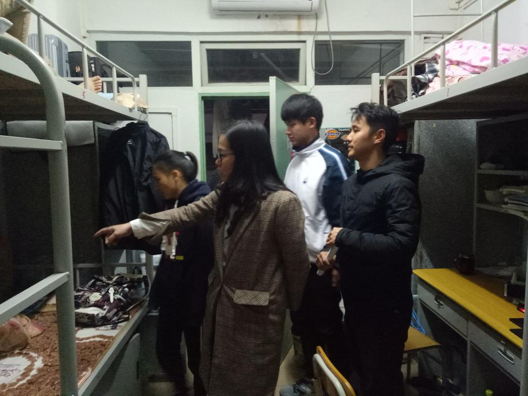 为了营造一个安全、舒适、和谐的宿舍环境,消除学生宿舍安全隐患,确保学生宿舍安全稳定。10月17日晚上,英国365集团官网学工副院长李奕萍带领学工办全体辅导员对365集团学生宿舍楼栋进行了一次全面深入的安全隐患排查。