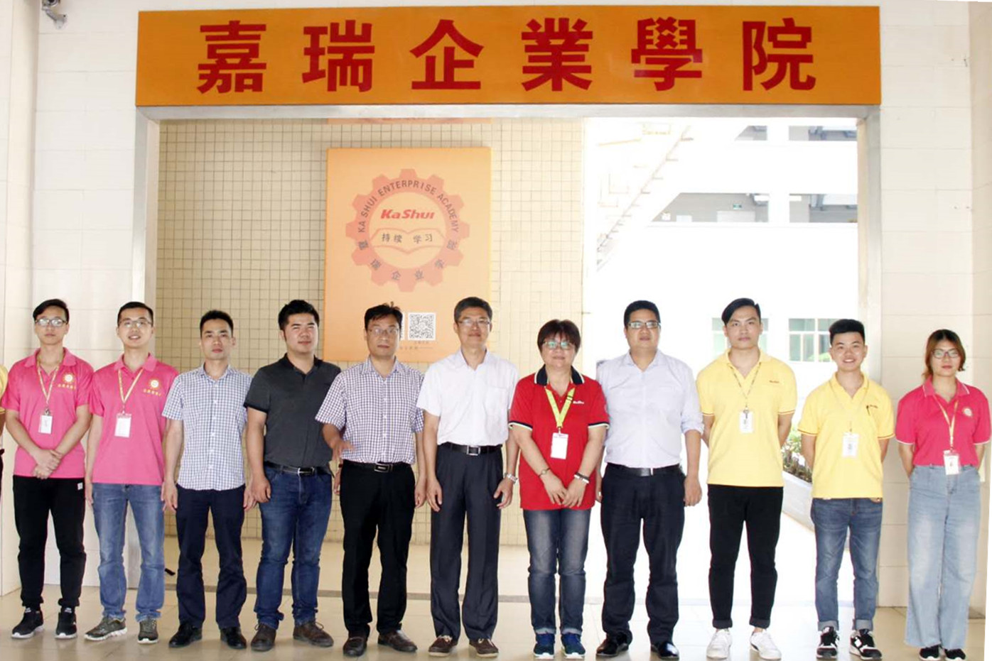 为促进现代学徒制人才培养模式改革,推动形成校企融合、协同育人、创新发展的长效机制,促进学院内涵建设和人才培养质量提升。5月15日,英国365集团官网院长林勇、学校教务处处长鄢维峰、副院长李有兵等一行5人前往嘉瑞科技(惠州)有限公司洽谈2018级机电一体化技术专业现代学徒制班人才培养方案制定事宜。