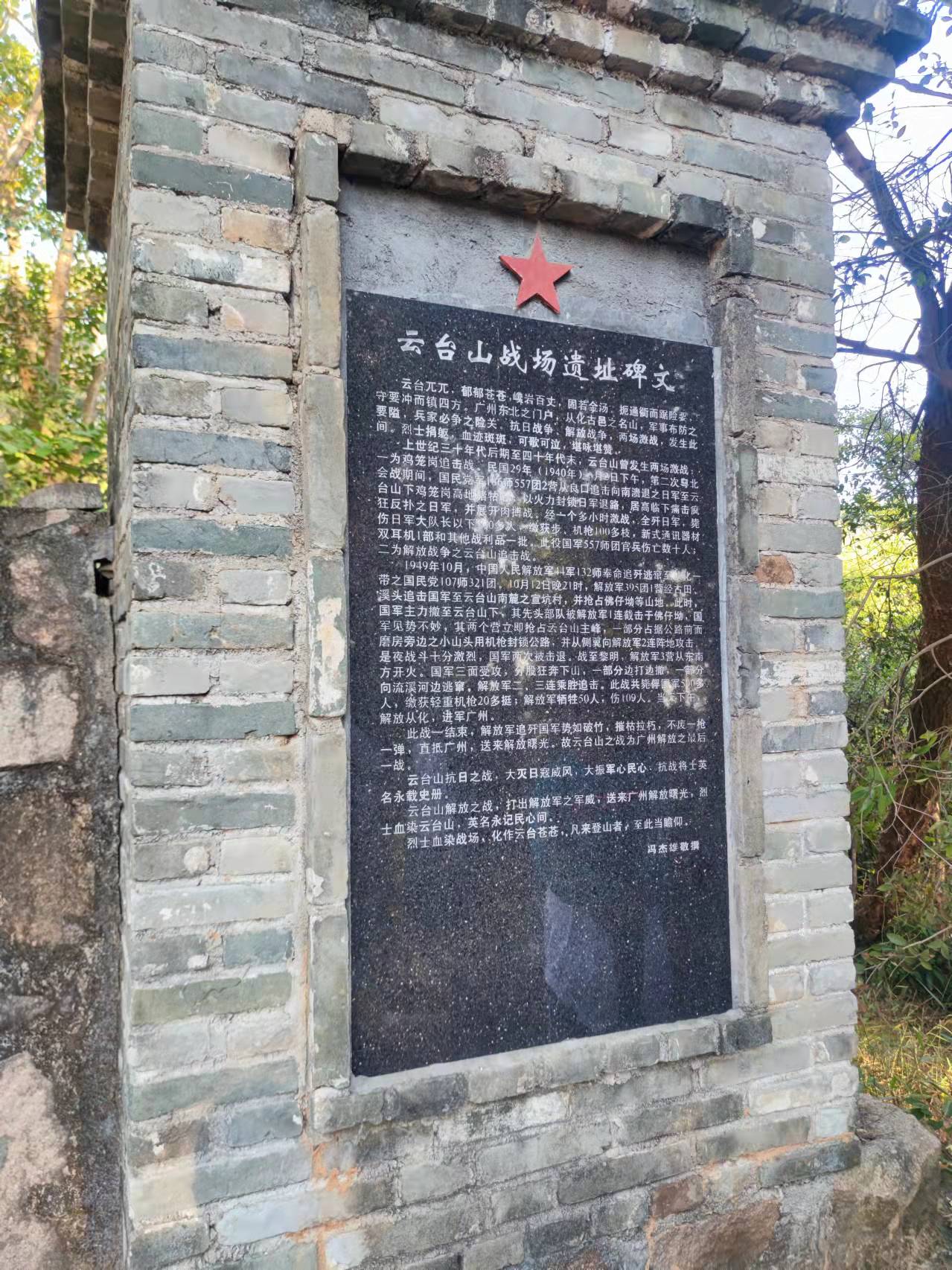 据了解,云台山战役是解放广州的最后一场战斗,1949年10月,人民解放军以秋风扫落叶之势进入广东,其中在解放广州的过程中,132 师 395 团作为先遣团在当地游击队和群众的向导下,从山路抄近追歼败退的敌军,并在云台山追堵敌军大部队,用猛烈炮火围击敌人登山,歼灭敌人,完成了解放广州的光荣任务。在了解完先烈们的革命事迹,缅怀了先烈们崇高精神后,同志们的心灵深受触动。