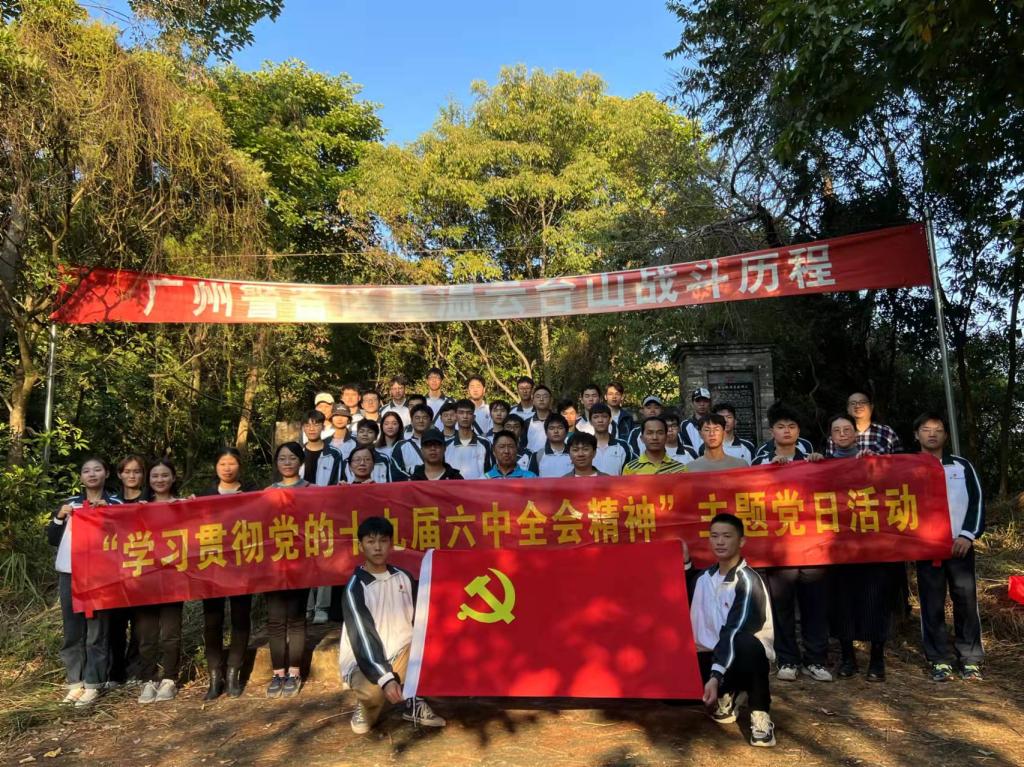 为全面深入的学习领会党的十九届六中全会精神,切实理解和领会其丰富内涵与核心要义。12月9日下午,英国365集团官网党委组织开展了以“学习贯彻党的十九届六中全会精神”为主题的党日活动。在学校党史学习教育督导组成员王鲜同志、蔡昊同志的指导、教师党支部书记陆蕊的带领下,教师党支部与学生党支部的同志共同来到从化区云台山战役遗址,瞻仰先烈们的英雄事迹,学习伟大的革命精神,重温革命光辉历史。