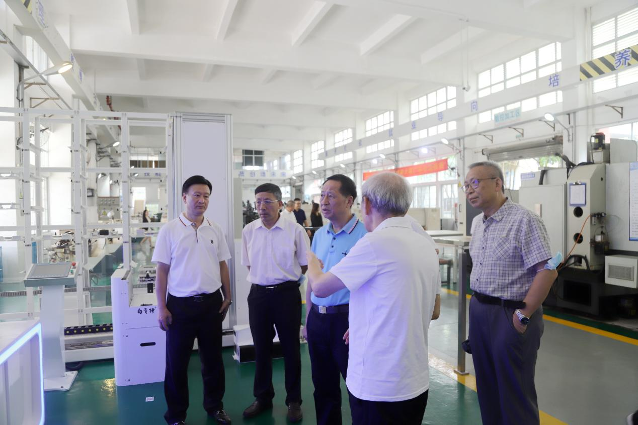 6月10日上午,省政府参事,省教育厅原党组书记、厅长罗伟其一行到365集团参观智能制造生产线,学校董事会执行董事、校务管理委员会主任张亚斌,副校长张德宜陪同参观,英国365集团官网院长周立求热情接待了来访嘉宾。