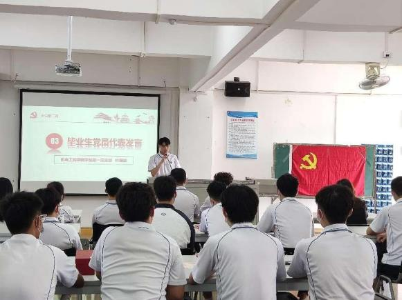 紧接着,毕业班党员代表发言。叶顺雄同志表达了对母校的感恩之情和未来将不忘初心、坚守信念,树牢“四个意识”,坚定“四个自信”,坚决做到“两个维护”,为实现中华民族伟大复兴作出新的贡献的决心。萧海明同志表示,去到新的学校,更要在学习和生活上充分带动更多的群众,让身边的群众在党的理论知识的熏陶下,不断的向党组织靠拢,充分发挥党员的先锋模范作用。