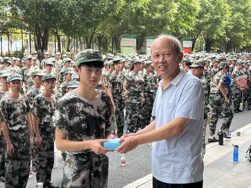 周立求给在军训的学生发月饼