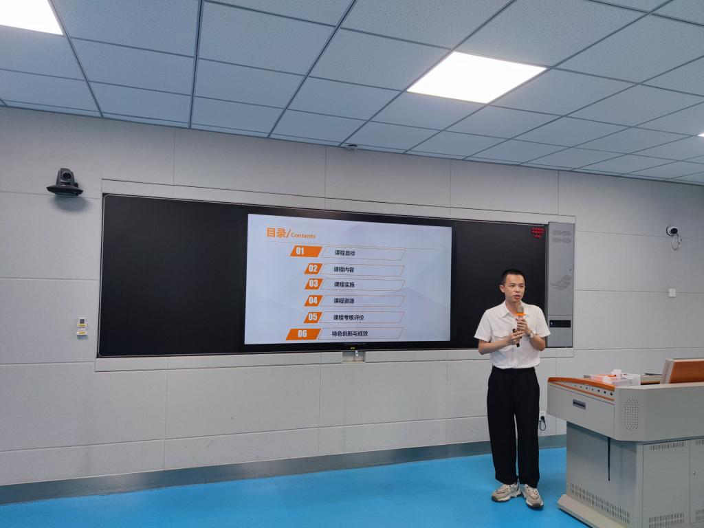经过前期的第一课“说课”评议活动,各个教研室分别推荐了一名教师参加学院的“说课”比赛。参加“说课”比赛的四位教师按照抽签序号依次从课程目标、课程内容、课程实施、课程资源、课程考核评价、特色创新与成效等六个方面介绍了授课课程,过程讲解流畅,仪态收放自如,展示了一定的教学技能和教师风采。