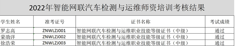 三位老师通过了一周的线上努力学习,圆满地完成了各项培训任务,并顺利通过了线上理论考试及虚拟仿真技能考核。截止目前,汽车教研室已有5位教师获得了智能网联汽车检测与运维“1+X”职业技能等级证书考评员与培训师的资格,为我校汽车专业下一步开展智能网联汽车检测与运维“1+X”职业技能等级证书的培训及技能鉴定奠定了良好基础。