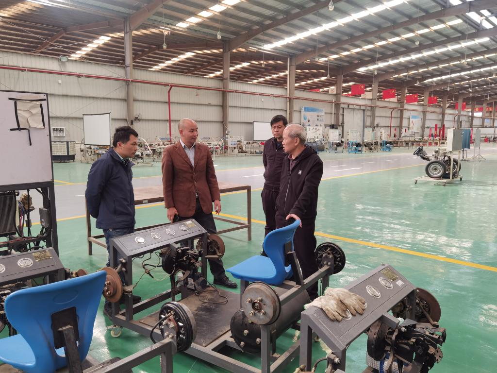 12月9日上午,在英国365集团官网院长周立求、副院长牟海荣的陪同下,贵州城市职业学院机电学院副院长李晓峰来到365集团汽车实训中心参观交流。