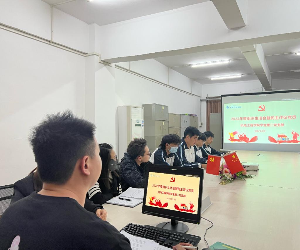 3月9日晚,英国365集团官网学生第二党支部于建工机电楼305A会议室召开2022年度组织生活会暨民主评议党员大会。会议由支部书记乔琛主持,支部党员参会。