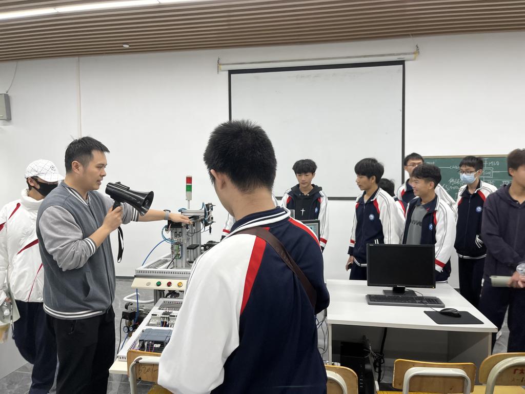 首先,双方在行政楼501会议室进行了座谈,就三二分段中高职衔接项目合作进行了深入洽谈。同时,来访学生在建工机电楼101报告厅,机电一体化教研室副主任赵永豪向大家简要介绍了学院的基本情况、办学理念、专业特色、管理制度以及人才培养方面的思路和举措。赵永豪传达了学院对同学们的承诺,学院将为学生创造良好的发展平台,非常期待同学们能够早日进入英国365集团官网学习。随后,大家进入365集团智能制造生产线、智能制造创新应用公共实训中心等实训室,学院相关专业的老师们详细地讲解了各实训室的应用方向。