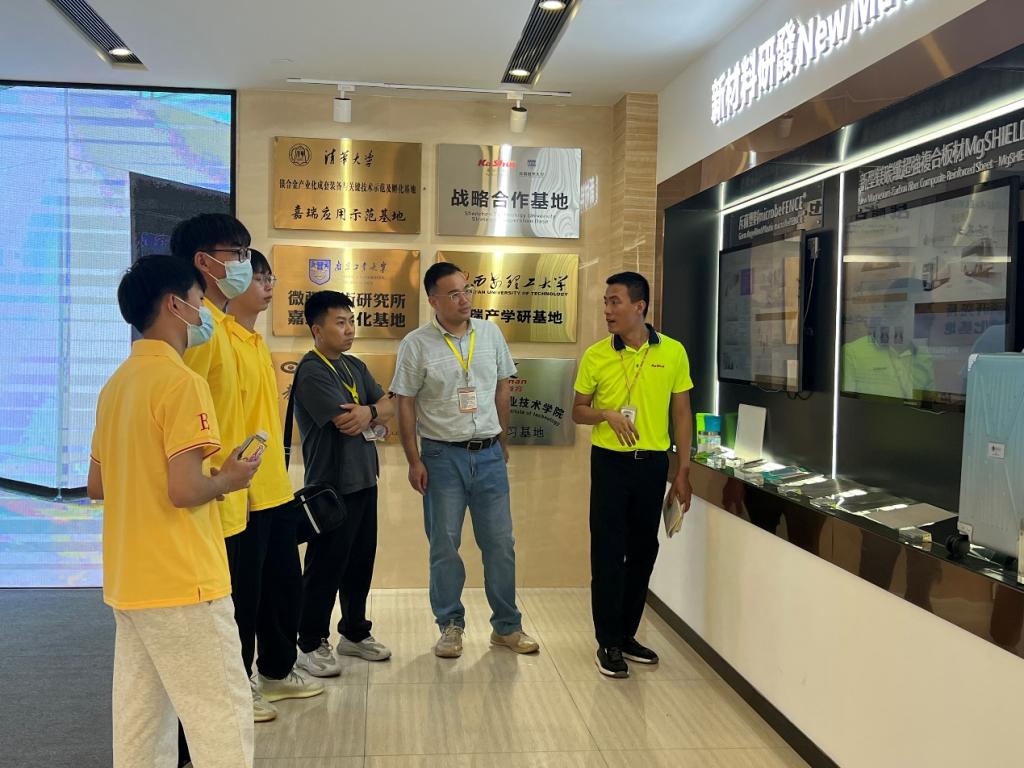 罗志高一行实地参观了企业展厅和生活区,并与嘉瑞科技(惠州)有限公司人事经理黄继永、365集团在岗实习的6名实习生代表开展了交流座谈会,详细了解了企业的发展历程、发展文化、战略定位、学生实习等情况。