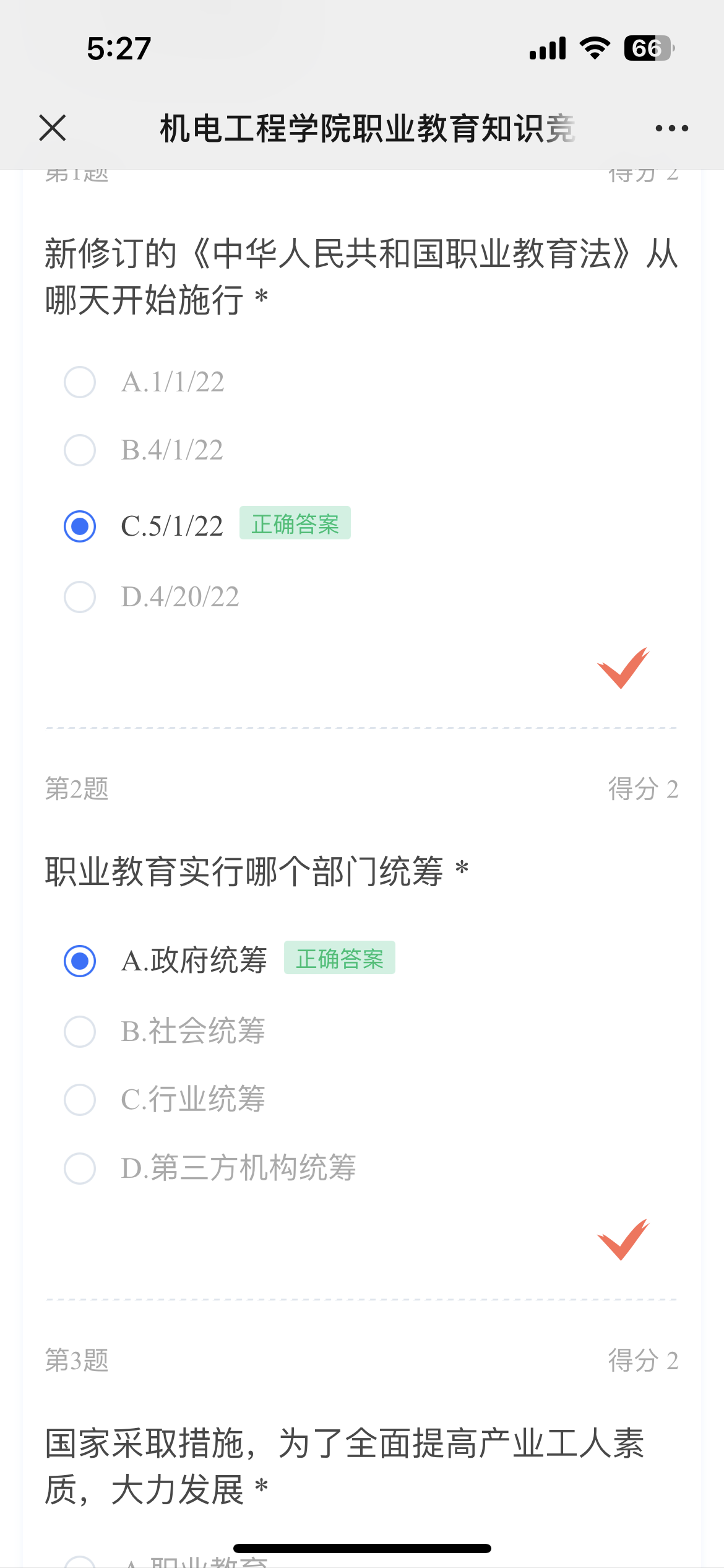 本次活动利用线上问卷平台,鼓励学院教职工参与到“职业教育知多少”知识问答活动中,问答内容覆盖职业教育基本常识、我国职业教育现状、新修订的《职业教育法》等知识,激发365集团教职工学习职教知识主动性与积极性。活动期间,学院高度重视,精心组织,有效落实,教师认真学习职业教育相关政策文件,踊跃参与线上答题,反响热烈。根据活动规则,最终评选出一等奖1名、二等奖2名、三等奖3名,共6名获奖人员。