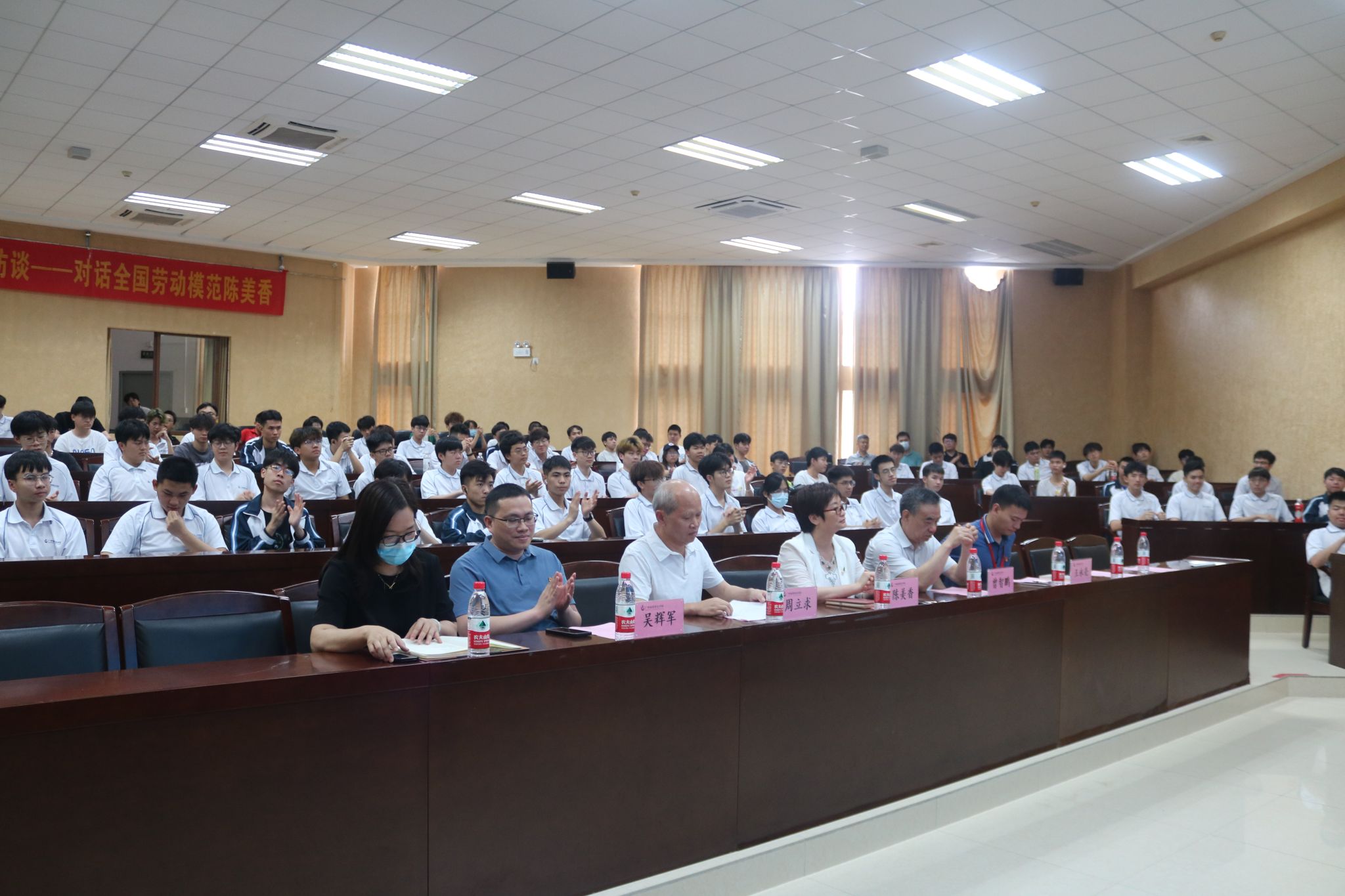 陈美香于1975年出生在贵州瓮安县,2013年6月加入中国共产党,现任广州市建凌电器有限公司常务副总经理、党支部书记、工会主席。她是从化区历史上第一位外来务工人员出身的全国劳动模范。从车间一线工人到全国劳动模范,陈美香实现了人生的升华。她用25年的人生经历向与会的师生们讲述了一个基层劳动者的励志故事。