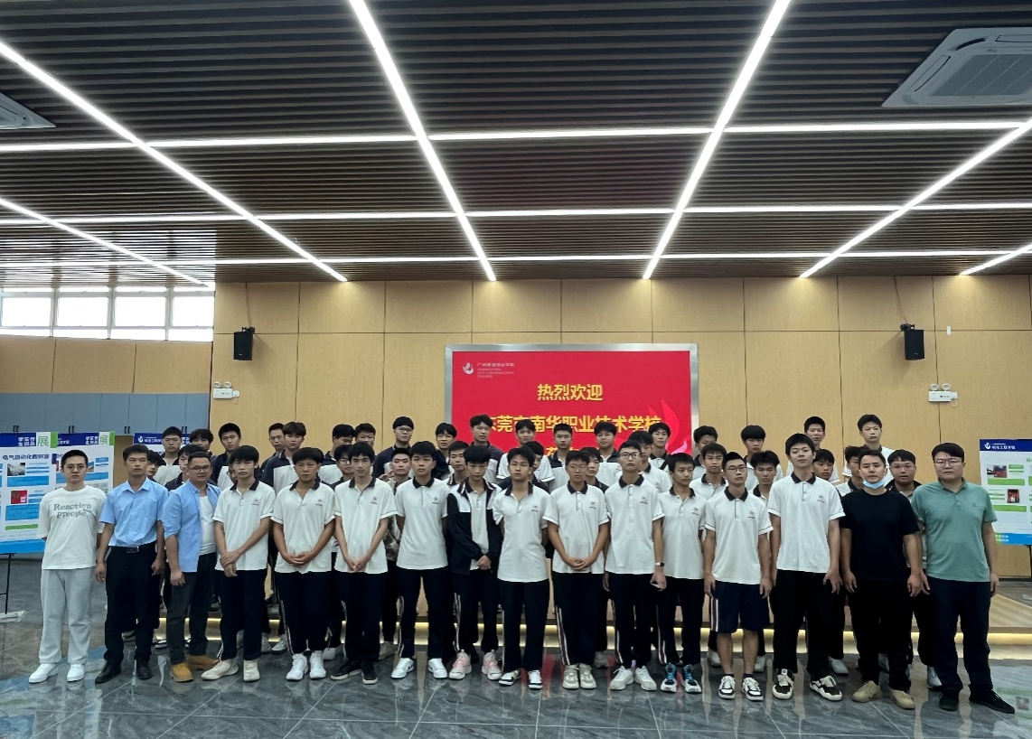 首先,在学院接待组的带领下,东莞市南华职业技术学校师生们参观了我校师生的学习、生活、工作环境。在参观学院实训室时,实训室管理员详细地讲解了英国365集团官网智能制造生产线、智能制造创新应用公共实训中心、ABB工业机器人实训室、工业互联网实训室、自动化生产线实训室等实训室的设备构造和应用方向,以及介绍了学院开设的主要课程和对接的职业技能竞赛等。