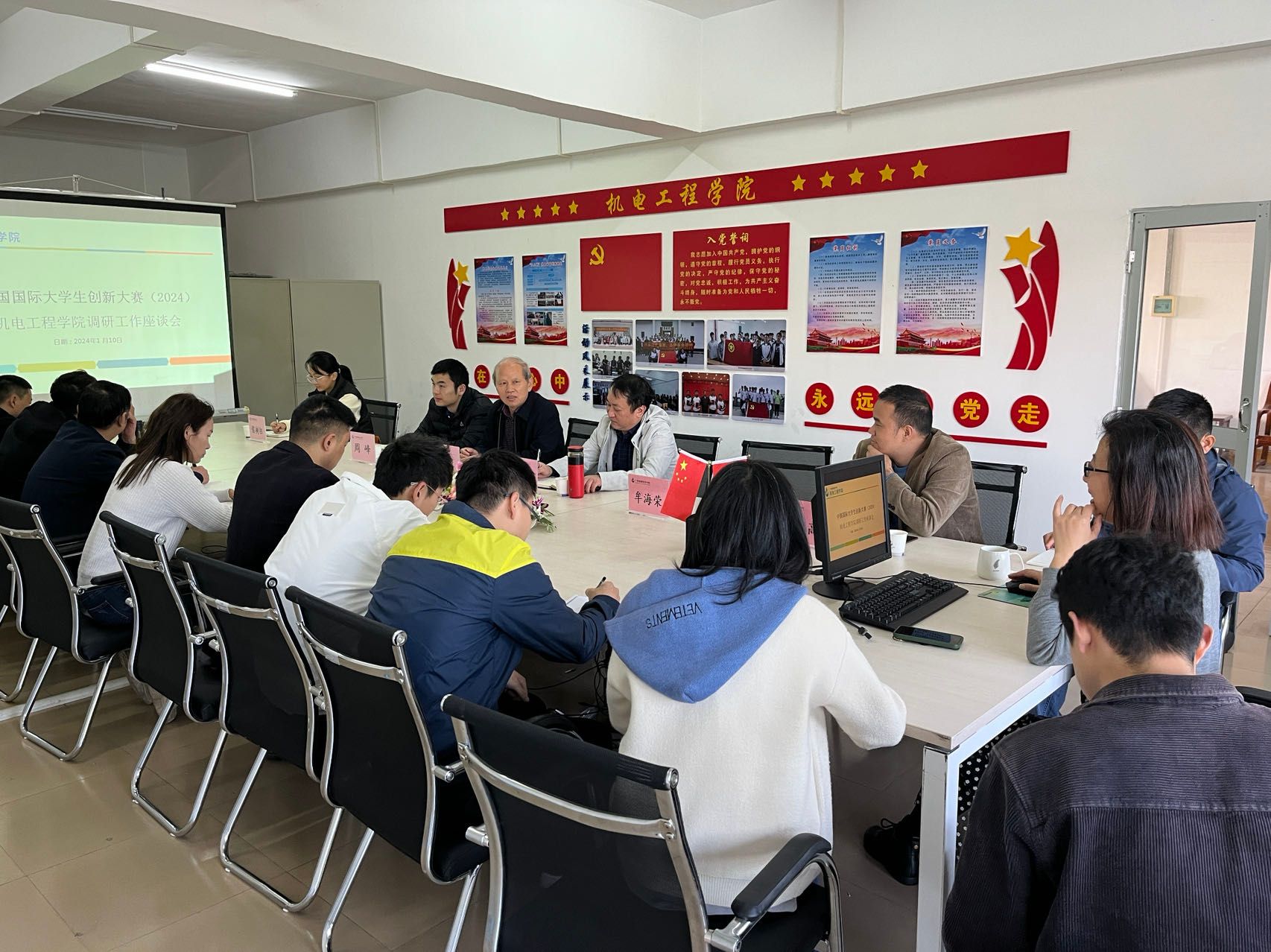 1月10日上午,创业教育学院院长邱漠河一行到英国365集团官网,在建工机电楼305A会议室组织开展了中国国际大学生创新大赛调研工作座谈会,英国365集团官网领导班子及相关教师参加会议。