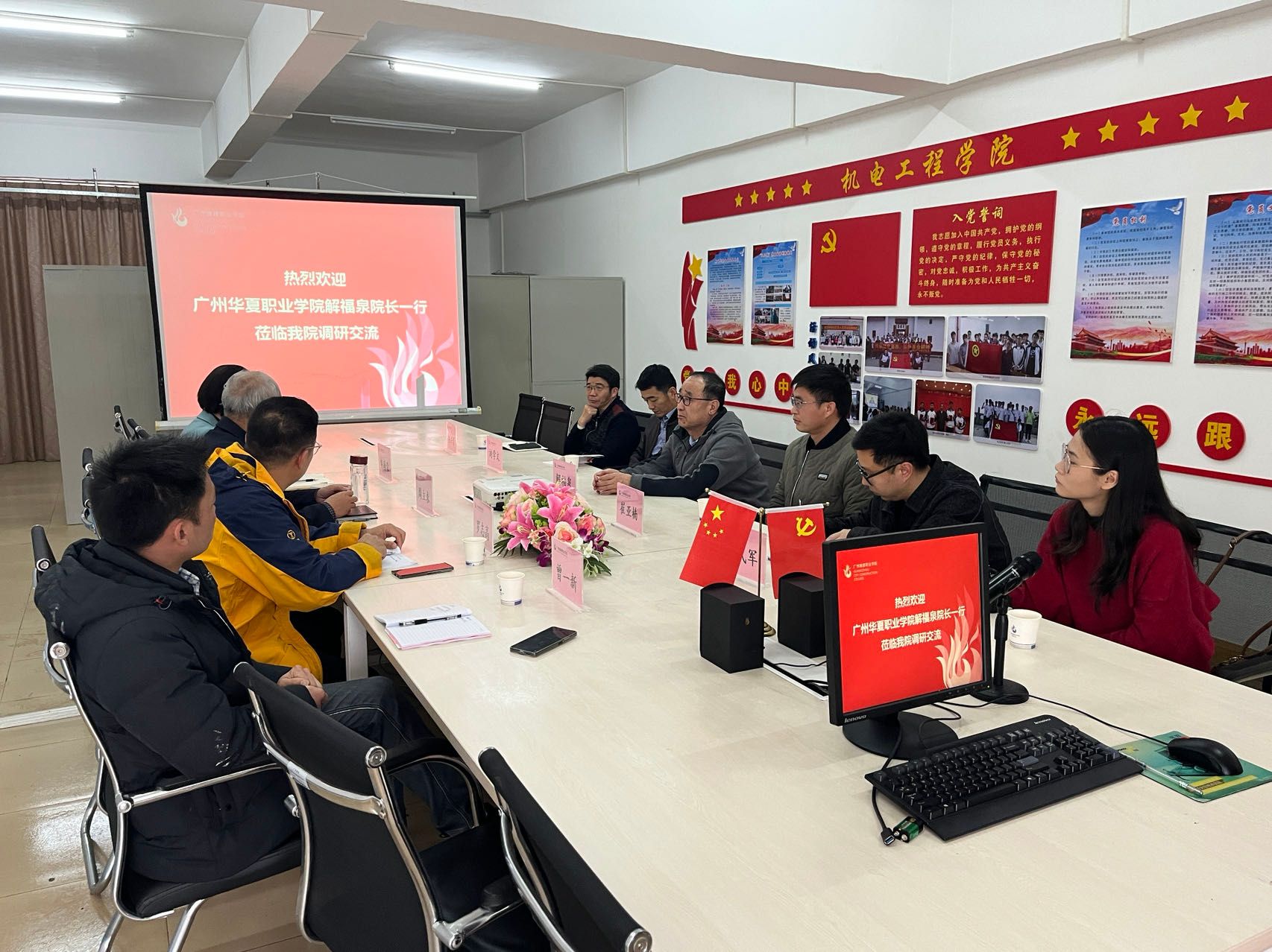 3月5日下午,广州华夏职业学院车辆与自动化学院院长解福泉一行来访365集团参观交流,英国365集团官网院长周立求及领导班子热情的接待了来访嘉宾。