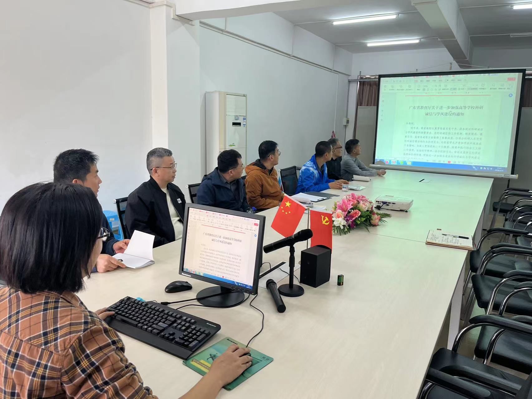 会上,牟海荣带领大家共同学习了《广东省教育厅关于进一步加强高等学校科研诚信与学风建设的通知》精神,深刻认识科研诚信是高校学风建设的基础,是新时代科技创新的基石,作为高校教师应当充分认识进一步加强高校科研诚信与学风的重要性和紧迫性,增强政治意识,采取切实措施,捍卫学术尊严,端正学术风气,坚决遏制学术不端行为。与会教师对通知精神进行了深入学习并进行交流研讨。