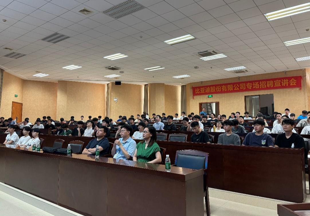 在宣讲会上,比亚迪股份有限公司的招聘团队详细介绍了公司的企业文化、发展历程、业务领域以及招聘岗位和要求。同学们纷纷表示,通过此次宣讲会,更加深入地了解了比亚迪的发展战略和人才需求,也更加坚定了自己的求职方向。此次宣讲会还安排了互动环节,同学们可以向招聘团队提出自己的疑问和困惑,招聘团队也积极回答了同学们的问题,为大家答疑解惑。