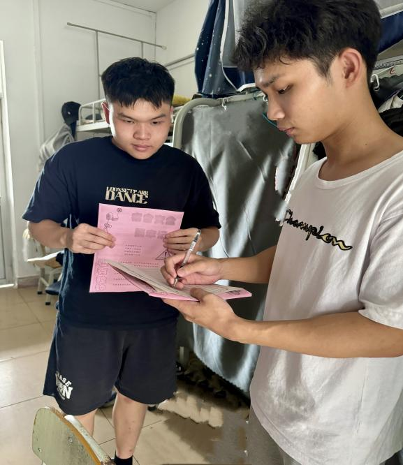 本次活动围绕16栋宿舍开展服务。一方面,安排受助学生协助团委学生干部检查学生宿舍,通过发放《宿舍安全》宣传单、提醒宿舍纪律问题和共同排查违规电器等方式,切实提高了学生的安全防范意识。
