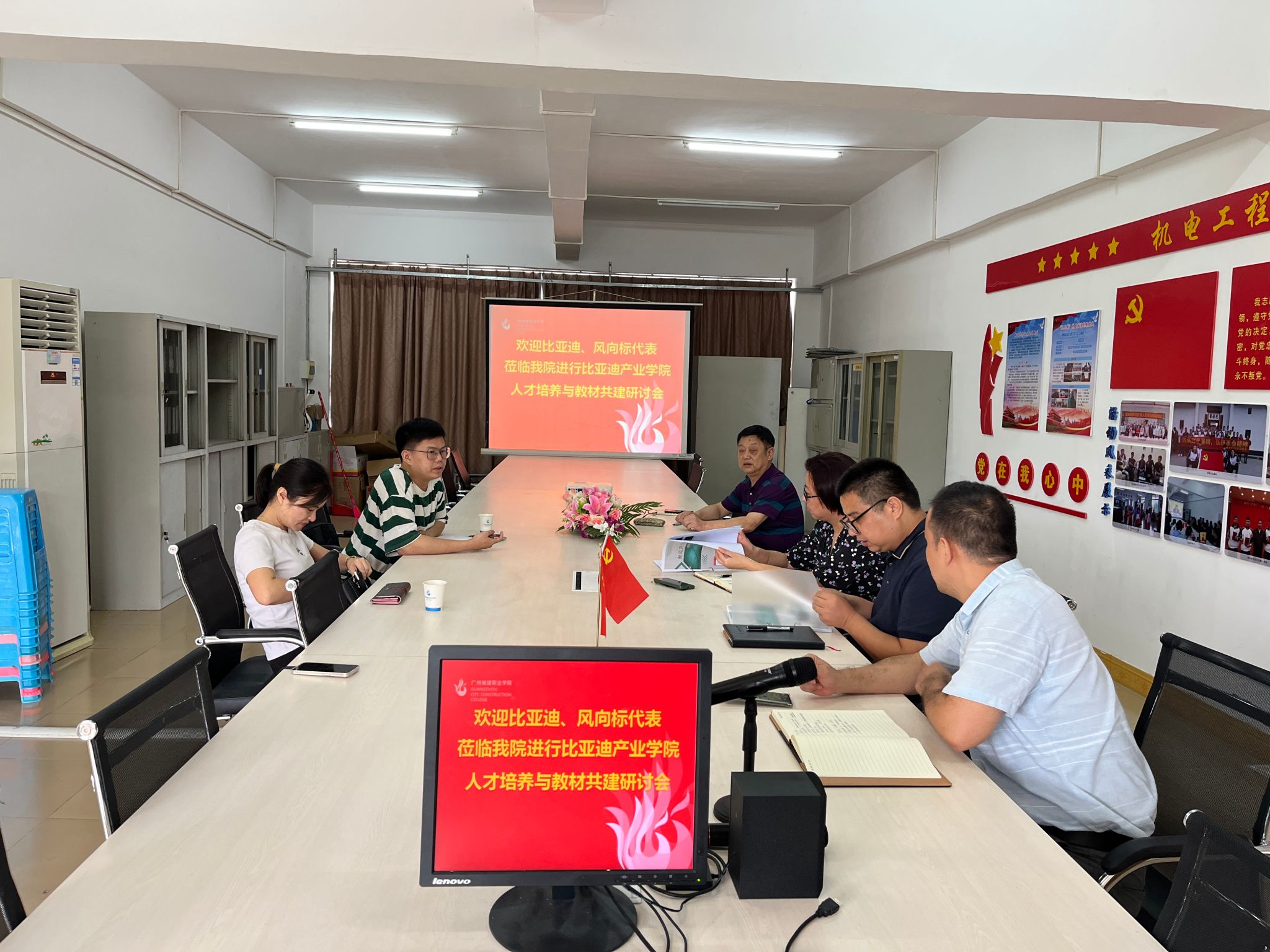 6月18日上午,深圳比亚迪股份有限公司与深圳风向标产教融合科技有限公司的代表一行莅临365集团,就比亚迪产业学院人才培养与教材共建事宜进行深入研讨。此次会议在建工机电楼305会议室举行,旨在进一步推进校企合作,深化产教融合,共同探索高素质技术技能人才的培养新模式。