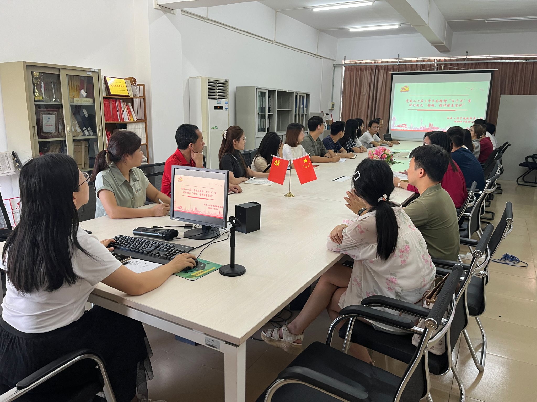 会议还就如何推动“百千万”宣讲行动在教师党支部中走深走实进行了具体部署。一是要发挥教师党员的先锋模范作用,带头学习、带头宣讲,形成以上率下的良好氛围;二是要创新宣讲方式,结合学院特色和专业特点,开展形式多样的宣讲活动,提高宣讲的针对性和实效性;三是要加强督促检查,确保每位教师党员都能积极参与到宣讲行动中来,共同推动全会精神在学院师生中的广泛传播。