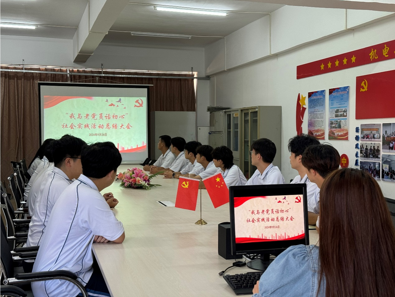活动回顾环节,通过视频短片的形式,生动展现了同学们在活动期间,深入社区、乡村、红色教育基地,与老党员面对面交流,聆听他们讲述革命故事、分享入党初心和奋斗历程的感人瞬间。从抗日战争的烽火岁月到改革开放的春风拂面,再到现在国家的繁荣富强,老党员们用亲身经历诠释了什么是忠诚与奉献,什么是责任与担当,深深触动了在场的每一位同志。